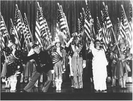 Cagney is now remembered mainly for his work as a gangster/tough guy in films such as 1931’s The Public Enemy (in which he famously shoved a grapefruit in Mae Clarke’s face), Angels with Dirty Faces (1938), and 1949’s White Heat (where he played perhaps the most psychotic gangster ever shown in film, Cody Jarrett). But Cagney’s roots lay in dance (particularly tap) and vaudeville, and he relished the role of Cohan, which allowed him to combine his latent song-and-dance-man talents.
