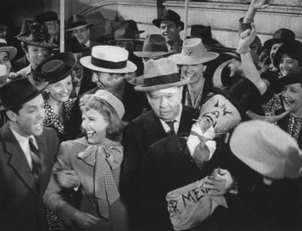 This film really is an ensemble piece; though Arthur and Coburn, the titular pair, are the centerpiece of the film, the supporting turns by Cummings (an underrated comedic actor) and Byington (a reliable character actress whose presence graced many a classic picture) are essential to the success of the movie’s premise. The quartet is enjoyable and capable, and the pairing of Coburn and Byington, particularly, is sweet (it also bears mentioning that the film features a supporting turn by my favorite character actor, “Cuddles” Sakall, as Coburn’s hapless butler). And the film’s deliciously arch humor is evident from the start, as the opening credits conclude with the plea: “Dear richest man in the world: We made up the character in the story out of own heads. It is nobody, really. The whole thing is make-believe. We’d feel awful if anyone was offended. Thank you, the Author, Director and Producer. P.S. Nobody sue. P.P.S. Please.”
