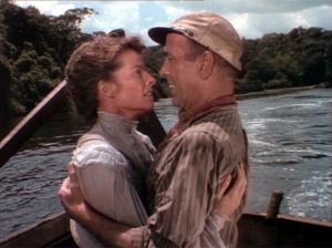 The film is a noteworthy one in the history of cinema for being one of the first big-budget Hollywood productions filmed almost completely on location, in the heart of the Belgian Congo. And the movie would not have been nearly as effective had the action been filmed in a studio lot with backdrops and painted scenery. At least for filmgoers, it was worth the apparent hell that the stars, director (John Huston), and crew underwent to get the film made–insect infestations, bad water, unappetizing food, illnesses, dangerous wildlife, and constant downpours created difficulties for all involved (including Lauren Bacall, who accompanied husband Bogart on the journey). Still, their suffering resulted in something truly wonderful, because the location, perhaps even more so than the performances, makes this film what it is.