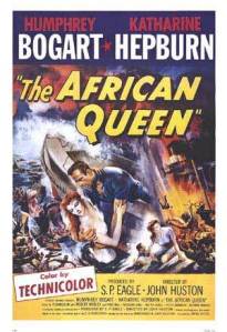 While The African Queen is not my favorite film in the repertoire of its stars, Humphrey Bogart and Katharine Hepburn (those would be Casablanca and Bringing Up Baby), I nonetheless find this movie to be, frankly, quite damn awesome. Bogart stars as Charlie Allnut, the dissolute captain of the titular old steamboat, who delivers supplies to villages in Africa in the midst of World War I. When German soldiers invade one such village, resulting in the death of a British missionary, his sister, Rose Sayer (Hepburn), leaves with Charlie to return home. Though the couple are vastly different, each heartily disapproving of the other, they overcome their mutual dislike and a romance develops. But when Rose dreams up a plan to destroy a nearby German ship as revenge for her brother’s death, the drunken captain must overcome his initial reluctance to get involved in order to ensure their success and their very survival.