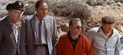 Mad is a true ensemble piece, with some of the most notable names in comedy in the leading roles and even more of them appearing in small cameos throughout the movie. Almost everyone who was anyone in comedy in the early 1960s is in this film, from Berle to Hackett to Winters (in his first film role) to an as-far-away-from-Andy-Hardy-as-you-can-get Rooney. And the movie pays particular homage to some of the forebears of this younger comedy crop: Buster Keaton, the Three Stooges, Jack Benny, and Durante, among many others, show up in the damnedest places throughout the story.