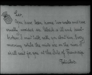 Felicitas is not above using her second husband as an excuse to ensnare her former lover’s attention, either. When Leo separates himself from the couple on Pastor Voss’ advice, Felicitas sends Leo a letter to guilt him back into her company: