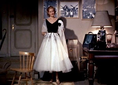 I love, love, love this dress. It’s perfect for the scene and for the character, and so daring with the bared midriff and short(er) skirt. A ten, all around. Head deserves a lot of credit for styling Stanwyck in a much sexier, bolder way than she had been presented in the past; it’s a step forward for both the actress and the costumer, as the great success of this Preston Sturges-directed farce sent each of their careers even higher into the stratosphere.