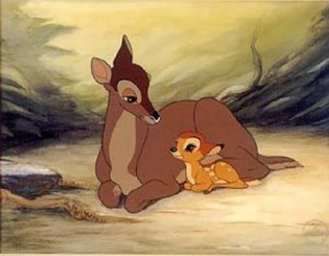 Bambi’s themes centering on the “circle of life” and the rules of the natural world would be echoed more than fifty years later in 1994’s The Lion King. And though the idea of a mother’s all-encompassing love is a holdover from this film’s immediate predecessor, 1941’s Dumbo, subsequent Disney films–particularly more modern entries into the canon–tend to focus more on the influence of father figures than on the constancy of a mother’s adoration (see Disney Renaissance pictures The Little Mermaid, Beauty and the Beast, The Lion King, Pocahontas, and Mulan, among others).
