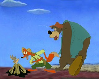 In the second animated segment, “The Tar Baby,” Br’er Fox and Br’er Bear construct a figure made of tar and dress it in clothing to disguise it as a real person. When Br’er Rabbit hops along and becomes insulted by the figure’s refusal to return a friendly greeting, he punches it and becomes stuck to the tar, much to the culprits’ delight. Unable to get free, he instead tricks his adversaries into throwing him into the briar patch, repeating, “But please don’t fling me in that briar patch!” over and over again. The reverse psychology works, and Br’er Rabbit easily escapes.