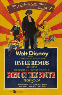 Despite the controversy surrounding the film, the characters are not completely ostracized from their brethren in the Disney animated family. The songs from the film, particularly “Zip-a-Dee-Doo-Dah,” have been recorded by various artists on Disney compilation and tribute albums in recent years, and Br’er Rabbit and crew have even given rise to one of the most popular rides at the Walt Disney theme parks, Splash Mountain (which, incidentally, is also my personal favorite ride–it’s wicked awesome).