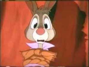 The final cartoon of the film, “The Laughing Place,” finds Br’er Rabbit in the clutches of Br’er Fox and Br’er Bear. Tied to a spit, ready to be roasted, Br’er Rabbit bursts into laughter as the fox puts him over the flame. Br’er Rabbit explains that he was thinking about his “laughing place,” which he says is a secret. Though Br’er Fox is skeptical, Br’er Bear insists on seeing the laughing place. Br’er Rabbit leads them through the forest and tells them the laughing place is in a thicket with an active beehive. When both of his opponents end up being chased away by bees, Br’er Rabbit is left free, collapsing in hysterics (“I didn’t say it was your laughing place. I said it was my laughing place, Br’er Bear!”).
