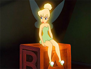 The film has contributed quite a bit to the Disney mythos; Tinker Bell, more so than any other character, has become ubiquitous in the general Disney consciousness, especially as of late–the little fairy is everywhere, from toys to games to clothing to even her own series of digitally-animated films. She has been the unofficial mascot of the Disney company for years, sprinkling her fairy dust and wielding her magic wand at the start of many a Disney production such as The Wonderful World of Disney (anybody else miss that show???). And Disney has taken advantage of her popularity, spinning off a line of Disney Fairies from the company’s Disney Princesses imprint, of which Tink serves as the ubiquitous Head Fairy. If Tink weren’t so damned annoying, I’d probably cheer at this development; as it is, the proliferation of Tinker Bell merchandise needs to end. I’m tired of seeing her smirking little pixie face every time I round a corner at the freaking neighborhood Wal-Mart, thankyouverymuch.