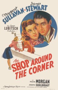 Released in 1940, Shop stars James Stewart as Alfred Kralik, salesman at Matuschek and Co., a store in Budapest. When Klara Novak (Margaret Sullavan) comes in looking for employment, she charms store owner Hugo Matuschek (Frank Morgan) and earns herself a position, much to the irritation of Kralik. The film explores their antagonistic relationship at work, juxtaposed with their growing romantic relationship as secret pen-pals. When Kralik discovers that the woman who drives him nuts at work is the epistolary woman of his dreams, his reaction sets off a chain of events that leads to the ultimate happy ending.