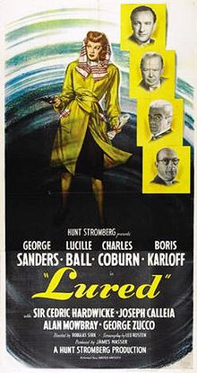 Lured is one of the more than 70 films featuring a pre-I Love Lucy Ball. Though she acted with any number of A-list stars during her days as a contract player (Ginger Rogers, Katharine Hepburn, even the Marx Brothers), Lucy was popularly known around Hollywood as the “Queen of the B’s.” And in large part, many of these movies were made in black-and white; Ball’s coloring—vibrantly red hair and blue eyes–were especially difficult to light and film, leading some around town to refer to the actress as “Technicolor Tessie.”