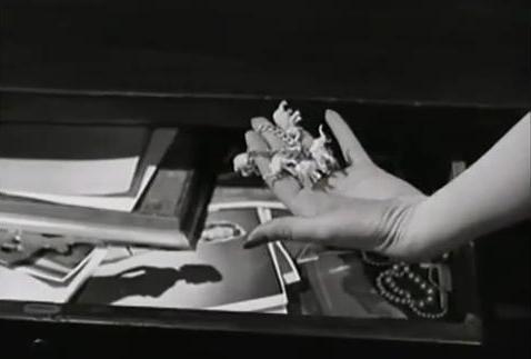 Sandra moves into Robert and Julian’s home, and Sandra insists that she does not intend to displace Julian and that he will continue to live with the couple after the marriage. Soon afterward, when Sandra leaves her muff in the living room, Julian discovers her police ID card inside. And not long after that, Scotland Yard receives another poem from the Poet Killer, targeting a girl “in a dress of shimmering stars.” Cut to Sandra, standing in a ball gown dotted with a starry design.