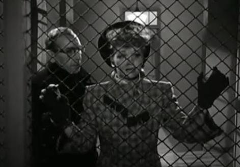 Inspector Harley Temple (Charles Coburn) approaches Sandra and questions her about Lucy’s life. She tells him about the personal ad Lucy had answered, and he determines that this is the killer’s method of attracting his victims. After a cursory demonstration of the shapeliness of her legs (naturally), Temple also discovers that Sandra has keen observational skills and, in a moment that tests the audience’s capability to suspend disbelief, offers her a position on the force–she is to be used as bait to entice and trap the Poet Killer. She is given a police identification card and a gun of her very own (for “moral support”).