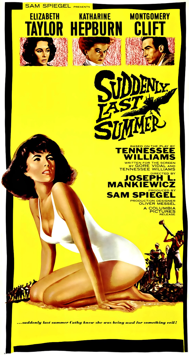 As I mentioned yesterday, today’s Therapy Thursday post will showcase Suddenly, Last Summer, with Katharine Hepburn and Elizabeth Taylor. Oddly, I haven’t been able to come up with a good topic for this series in weeks upon weeks … I just had nothing. Then, yesterday, doing a brief tribute to Elizabeth Taylor, this movie came to mind and it was an obvious choice. It’s a great topic for this series, but the universe is an odd place, and this timing is better than had I done it earlier anyway. Now to the point.