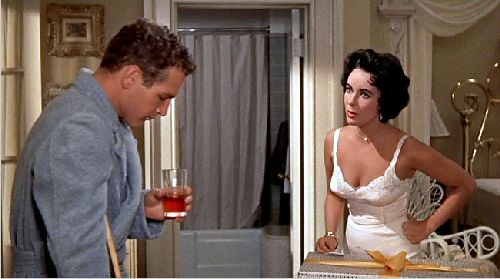 In this film version, Brick is played by Paul Newman, and this performance earned him his first Academy Award nomination (he would later win Best Actor for 1986’s The Color of Money). Newman portrays Brick with a barely-leased sensuality that ultimately works well for the character. His interactions with Elizabeth Taylor, who plays Maggie, provide some of the best moments of the film, particularly when he is rejecting her advances outright—he makes it seem like the most natural thing in the world to rebuff your beautiful wife when she’s offering herself to you without reservation. Marvel at the restraint.