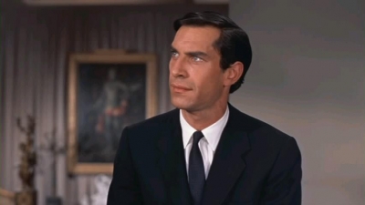 Though Roger is more than willing to engage in verbal games with Eve (and to attempt to do even more than that when she offers him refuge in her train car), her “betrayal” causes him to do an about-face. Ignoring his own behavior—and the implication throughout the film that he has spent many a night in the beds of any number of women—the ego-bruised Roger harshly judges Eve for “using sex like some people use a flyswatter,” labeling her a “tramp” (he, on the other hand, is merely a man, like any other man, only more so—to borrow a line from Casablanca). Of course, once the Professor explains that Eve was merely doing her job, Roger’s fit of pique is forgotten—she is once again a clean and shining figure of feminine virtue, and he dons the mantle of “white knight” in order to “save” her from having to “bed down” with Vandamm in the name of national security.