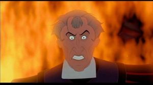 Disney chose Tony Jay to play Frollo, which was a rather wise move. His voice suits his character, and his experience in voicing characters is extensive, having played a villain in radio drama and portrayed numerous animated characters (including the crooked asylum director in Beauty and the Beast). He already knew how to play evil, morally and ethically questionable, and—let’s just say it—a bit creepy.