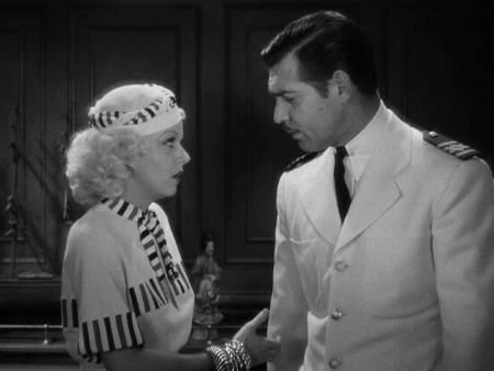 The film presents two very different women. Harlow’s character, China Doll, is pure vamp, oozing sex with every step and sideways glance. When Gaskell discover her in his bathroom and asks what she’s doing aboard his ship, she blithely replies, “Nothing alarming. Just showering dewdrops off the body beautiful.” That she thinks nothing of stripping down and jumping in Gaskell’s shower indicates the scope of their relationship–they were previously lovers, and judging by Gaskell’s anger at her unexpected appearance, he has attempted (and obviously failed) to cut her loose. China Doll calls herself “the gal that drives men mad,” and it’s true: from Gaskell to Jamesy (who later claims that loving China Doll was “the only decent thing I ever did in my life, and even that was a mistake”), she leaves a series of frustrated male libidos in her wake.