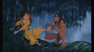 Still, despite these alterations to the original text, the film retains an element of darkness in the manner by which the villain, Clayton, is dispatched–he dies, somewhat gruesomely, by hanging, as his neck is caught in a vine and subsequently snaps. Though this moment is obviously not shown altogether graphically in the movie, one must imagine that it could be disturbing for some young’uns among the film’s viewership.