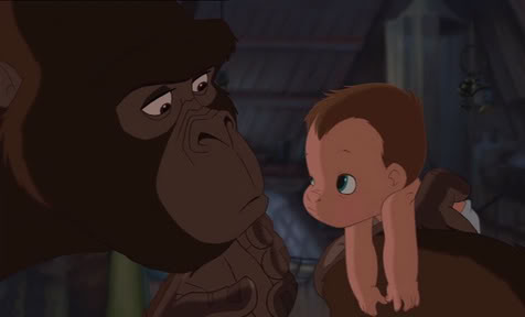 Tarzan is a gorgeous piece of animation, due in large part to the development of the Deep Canvas technology. This allows for the backgrounds of the film to be created in 3D–in other words, rather than serving as static backdrops for the action of the movie, the two-dimensional characters are able to move realistically through the backgrounds, which themselves do not appear to be computer-generated, but are instead meticulously designed to appear hand-painted. Take, for instance, the segment embedded below, in which a young Tarzan resolves to do whatever possible in order to become a better “gorilla”: