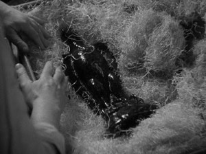Wonderly’s peccadilloes are also spelled out more explicitly in this movie. When negotiating with Spade for possession of the falcon, Gutman implies that the detective is merely the latest in a long line of infatuated male suitors: “Miss Wonderly’s admirers have been many, sir, and she has used them to her advantage.” In other words, in case you couldn’t grasp the leering meaning behind Gutman’s claim, Miss Wonderly is, in his estimation, little more than a common whore.
