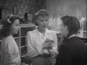Lynn’s first acting role was in 1942 in The Major and the Minor, playing Lucy Hill, the precocious sister of Rita Johnson’s bitchy blonde. Lynn couldn’t have asked for a better acting debut–her costars were Ginger Rogers and Ray Milland, and the film was the first to be directed by famed screenwriter Billy Wilder. The young actress certainly makes her mark–the smart-assed, wise-beyond-her-years budding scientist is one of the highlights of this utterly delightful comedy. As the only one who sees through Rogers’ charade (making her instantly smarter and more perceptive than every adult in the room), Lynn deftly portrays Lucy’s youthful cynicism with an irresistible sparkle.