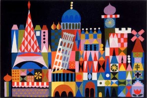 Though Blair left the Disney studios after production on Peter Pan was completed, Walt (who had long demonstrated that he was one of Blair’s biggest fans) asked her to design the “It’s a Small World” pavilion for the 1964 World’s Fair in New York. The attraction was later installed at Disneyland in California and replicated at other Disney parks around the world (some of her concept art for the ride is posted above).  Blair also created murals for the Tomorrowland section of Disneyland and the Contemporary Resort at Disney World in Florida.
