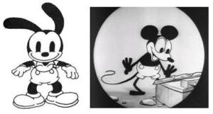 In the wake of the Oswald fiasco, Disney was determined to protect his future characters. He turned to Iwerks to create a new face for the Disney company. Iwerks was inspired by some sketches of mice that fellow animator Harman had jotted on a photograph of Disney in 1925 (Walt had had a pet mouse in Kansas City of which he was particularly fond). Iwerks modified the original Oswald design (so as to avoid any accusations of copyright infringement) and created a simplistic, rounded body design for the new mouse character, featuring the iconic rounded ears that even today remain an instantly recognizable symbol of the Walt Disney Company. Walt originally intended to name the new character “Mortimer Mouse,” but his wife Lillian thought “Mortimer” to be too pretentious a name, and the new creation was instead christened “Mickey” (incidentally, the name “Mortimer” would reappear about a decade later, used as the name for Mickey’s rival for Minnie Mouse’s affection).