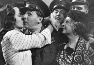 Unbeknownst to them, however, Woodrow’s mother tells the entire town that her “conquering hero” is returning home, and a huge reception awaits them at the train station–including Libby (Ella Raines), Woodrow’s true love. She is now engaged to the pompous mayor’s son (Bill Edwards) after having received a letter from Woodrow telling her that she shouldn’t wait for him.