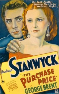And there you have the twisted set-up for 1932’s The Purchase Price, a pre-Code drama that strains credulity. There’s enough material here for several films, and it’s all crammed into a little over an hour of sometimes abruptly-cut scenarios. That wouldn’t be such a bad thing, however, if the narrative as a whole made a lick of sense. Instead, the movie seems as though it were thrown together with a half-cocked script designed solely to showcase naughty behavior and not-so-sly sexual innuendo. When I realized that the movie was directed by William Wellman, I was initially surprised, as it seems very unlike his typical milieu … and then I remembered that this is the man who went on a B-movie lark with Stanwyck in 1943’s Lady of Burlesque, and it didn’t seem so odd. At the very least, Wellman got something out of working on this film with Stanwyck–reportedly, when he began writing the script for 1937’s A Star is Born, he based the marriage of Norman Maine and Esther Blodgett on the union of Stanwyck and Frank Fay, which began disintegrating while she was filming The Purchase Price.