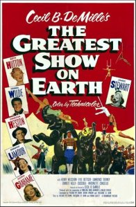 “Since we lived out in the country and didn’t have much in the entertainment budget, movies were rare events and family affairs. The family complained that I would get upset or maybe bored and have to be taken out, making someone miss the movie. I don’t know why they didn’t just leave me at home. I was told that the first movie I sat through (without having to be taken out) was The Greatest Show on Earth (1952) when I was about three years old, although any memories of it are overlaid by those of the re-release of it five or six years later. It was a spectacular movie, but it is often cited as the least-deserving Best Picture winner ever, so I don’t know what that says about my taste.
