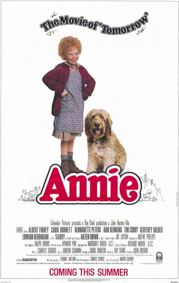 Concerning the movie itself, Annie is still one of my favorites. Once we finally got a VCR, my uncle gave me a copy of Annie, and so I probably saw it a few hundred times in the 80s alone! Annie really planted the seed for what later became a passionate love of musicals. I adored so many things about the movie–the songs, the characters, the fact that it was about kids (and girls, at that). The actors became some of my all-time favorites–Bernadette Peters, Carol Burnett, Ann Reinking, Tim Curry … what’s not love about this cast?! I already loved Carol Burnett from her television variety show, so it was fun to hate her as this film’s evil Miss Hannigan.
