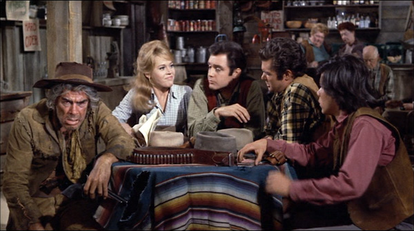 Lee Marvin truly deserved that award. For me his genius is in the introductory scene when he talks about the life of a gunfighter. The dialogue could have come from any of the 1950s adult westerns, but playing it as a drunk with his pants falling down – and playing it note perfect – is worth the price of admission any day of the week.