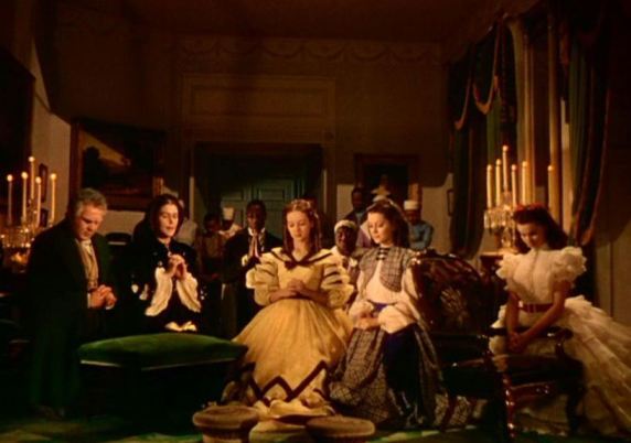 (From L-R, foreground): Thomas Mitchell, Barbara O’Neil, Evelyn Keyes, Ann Rutherford, and Vivien Leigh in a scene from GONE WITH THE WIND