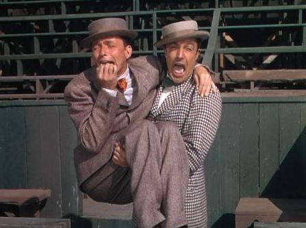 As you might expect, Ryan and O’Brien perform the famous “Take Me Out to the Ball Game” (the 1927 version, not the 1908, if you’re astute enough to know the difference. I wasn’t so knowledgeable, but I know a lot about using Google–I looked it up). My other favorite number was “O’Brien to Ryan to Goldberg,” depicting their famous double-play strategy that’s the key to their victories. The number is catchy and  entertaining, even if you are a blasphemer, like myself, who doesn’t particularly care for baseball. It’s all about the rhythm, and I tend to love Gene Kelly’s trio numbers, anyway (“Good Morning,” anyone?). They may not all be as famous as his other routines, but I enjoy them quite well.