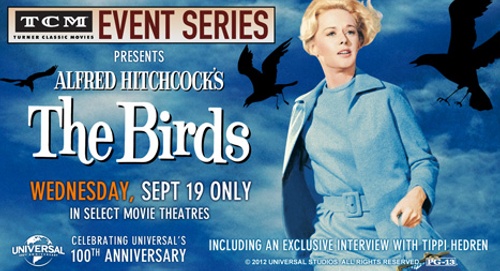 The partnership between NCM Fathom and Turner Classic Movies has brought some great events to theaters this year, what with the success of nationwide showings of Casablanca and Singin’ in the Rain. And they aren’t done yet: they have lined up three other great screenings this fall, starting with Alfred Hitchcock’s The Birds next Wednesday, September 19th! The event is being held in conjunction with Universal Studios’ 100th anniversary this year, and will be followed by two more Universal classics in October and November: a double feature of Frankenstein and The Bride of Frankenstein (just in time for Halloween!), and the seminal Southern classic To Kill a Mockingbird. For more information about these films, or to find a participating theater near you, check out the Fathom TCM Event Series site.