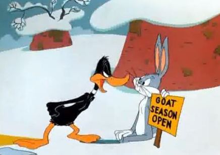 Bugs: “Okay. Would you like to shoot me now or wait ’til you get home.”