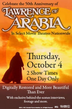 Then, on Thursday, October 4th, Fathom is partnering with Sony Pictures Entertainment to bring David Lean’s epic masterpiece Lawrence of Arabia (1962) to theaters for its 50th anniversary. The digitally-restored film will be presented in its original aspect ratio and will feature an intermission (a necessary inclusion, considering its length!). Arabia will be introduced by director/film historian Martin Scorsese and the movie’s Academy Award-nominated star, Omar Sharif.