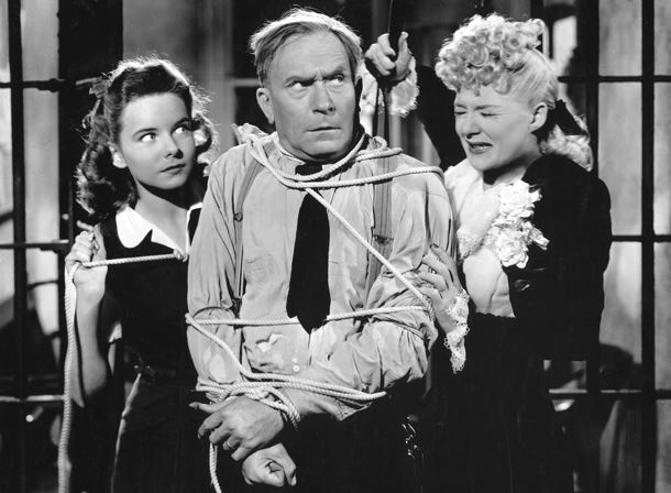 The film features some fine slapstick work from all involved, from Hutton’s drunken careening to Bracken’s nervous meanderings to Demarest’s multiple pratfalls while trying to kick her daughters’ behinds (literally). Demarest in particular works hard in Miracle: whether he’s sliding down fire poles, falling out of trees, getting in some punches, or being conked on the head by Emmy during a vain attempt to secure Norval’s freedom, Demarest throws his body around with abandon–impressive for a man of fifty (at the time).