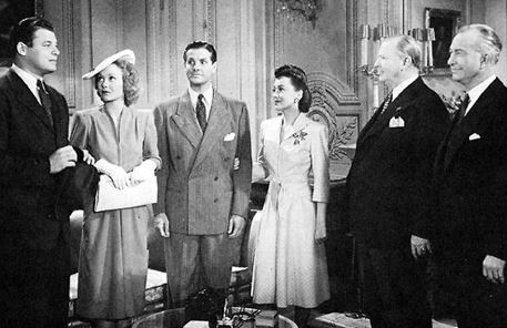 The supporting cast is rather remarkable, including the great duo of Carson and Wyman as the loving yet snarky Campbells and ubiquitous classic character actor Harry Davenport as the Supreme Court justice called in to save the day. But the standout among the supporting players is Coburn, who is wonderful as the heir-obsessed uncle, marveling over and over again about the O’Rourke family’s tendency to produce male offspring and repeatedly losing his monocle in various fits of surprise. Coburn, a welcome patrician figure in any number of films from the late 1930s through the 1950s, appeared in Princess O’Rourke six months after his celebrated comedic performance in The More the Merrier, which would ultimately win him an Oscar for Best Supporting Actor (he had previously been nominated in 1941 for The Devil and Miss Jones, and would score a final Academy Award nomination in 1946 for The Green Years). According to Roger Fristoe’s article about the film on the TCM site, by the time he began filming Princess, Coburn suffered from difficulties with his memory which required a number of retakes, particularly in his many scenes opposite de Havilland (and, as mentioned previously, may have prompted the ire of his director).