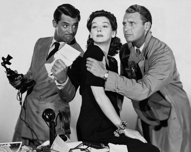 His Girl Friday centers around the futile attempts of reporter Hildy (Rosalind Russell) to escape the life of a newshound “wage slave” for a more sedate and “respectable” existence in suburbia with bland insurance salesman Bruce Baldwin (Ralph Bellamy, who undeniably excelled at playing such white-bread characters). The problem is, Hildy’s former boss, Morning Post editor Walter Burns (Cary Grant)–who also happens to be her ex-husband–is unwilling to let her go, and does everything he can short of committing murder to convince her to stay in his life, both professionally and personally.