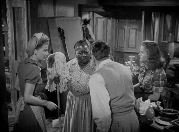 What really makes George Washington Slept Here appealing is the fantastic group of characters with which the Fullers surround themselves. Hattie McDaniel, in one of her typical servant roles, has some truly amusing moments as Hester, the family’s maid; like Bill, she thinks the entire affair is foolish, and is hard-pressed to understand Connie’s enthusiasm for the house (and equally hard-pressed to accept horses running through the kitchen). Charles Coburn, always a welcome sight, is wonderful as Connie’s skinflint (with good reason, as it turns out) uncle. Charles Dingle is an oily delight in one of his usual villainous roles. And in his film debut, Percy Kilbride—a favorite of Benny’s, who fought to ensure his casting in the role—recreates his deliciously deadpan stage role as Mr. Kimber, the caretaker who raises Bill’s ire with a litany of never-ending costs. Kilbride would later find stardom of his own as Pa Kettle in eight films of the popular Ma and Pa Kettle series.